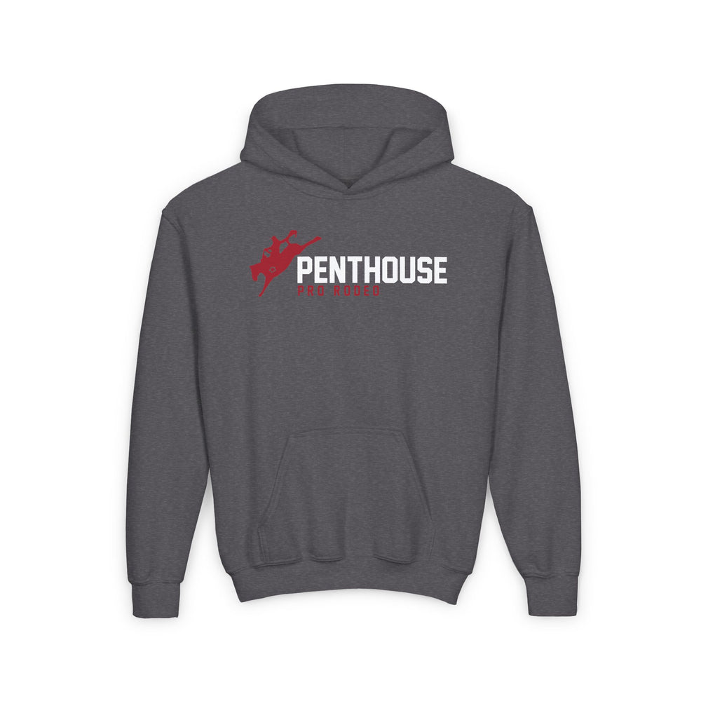 Elevate your young rodeo enthusiast's wardrobe with our premium Penthouse Pro Rodeo Youth Hoodie. Available in multiple sizes and colors including Dark Heather and Black, this comfortable sweatshirt showcases authentic rodeo spirit. Perfect for everyday wear or supporting at rodeo events. Pair with matching Penthouse merchandise for a complete fan look.