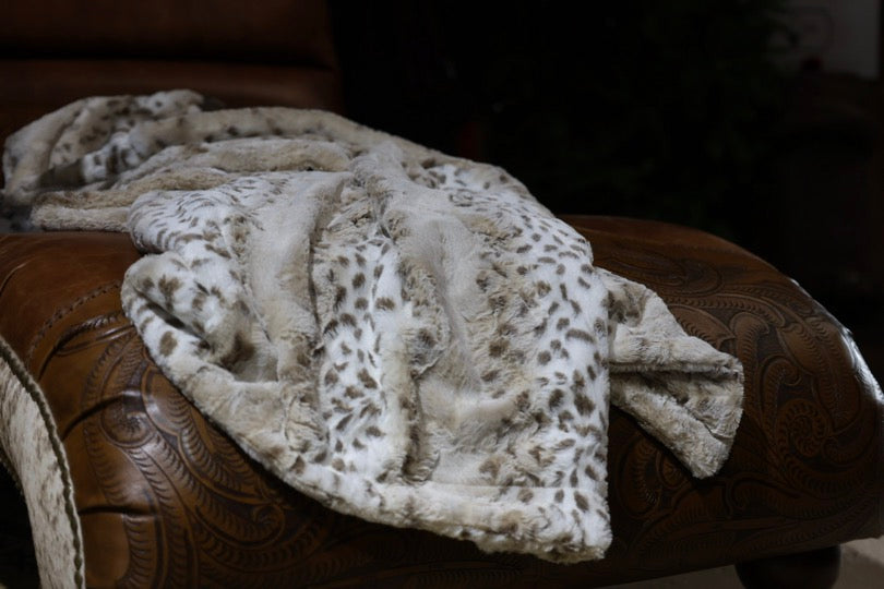 Meet The Taupe Lynx Blanket: A double-sided minky blanket featuring Taupe Lynx on both sides. Indulge in the ultimate embrace with our luxurious, handmade Minky blanket, crafted with care in the USA for unmatched softness and plushness, offering an unparalleled cozy experience.