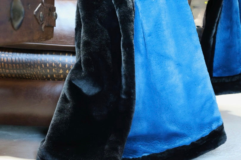 Meet The Midnight Current Blanket: A double-sided minky blanket featuring Dark Sea Bunny on one side and rich Black Encore on the other. Indulge in the ultimate embrace with our luxurious, handmade Minky blanket, crafted with care in the USA for unmatched softness and plushness, offering an unparalleled cozy experience.