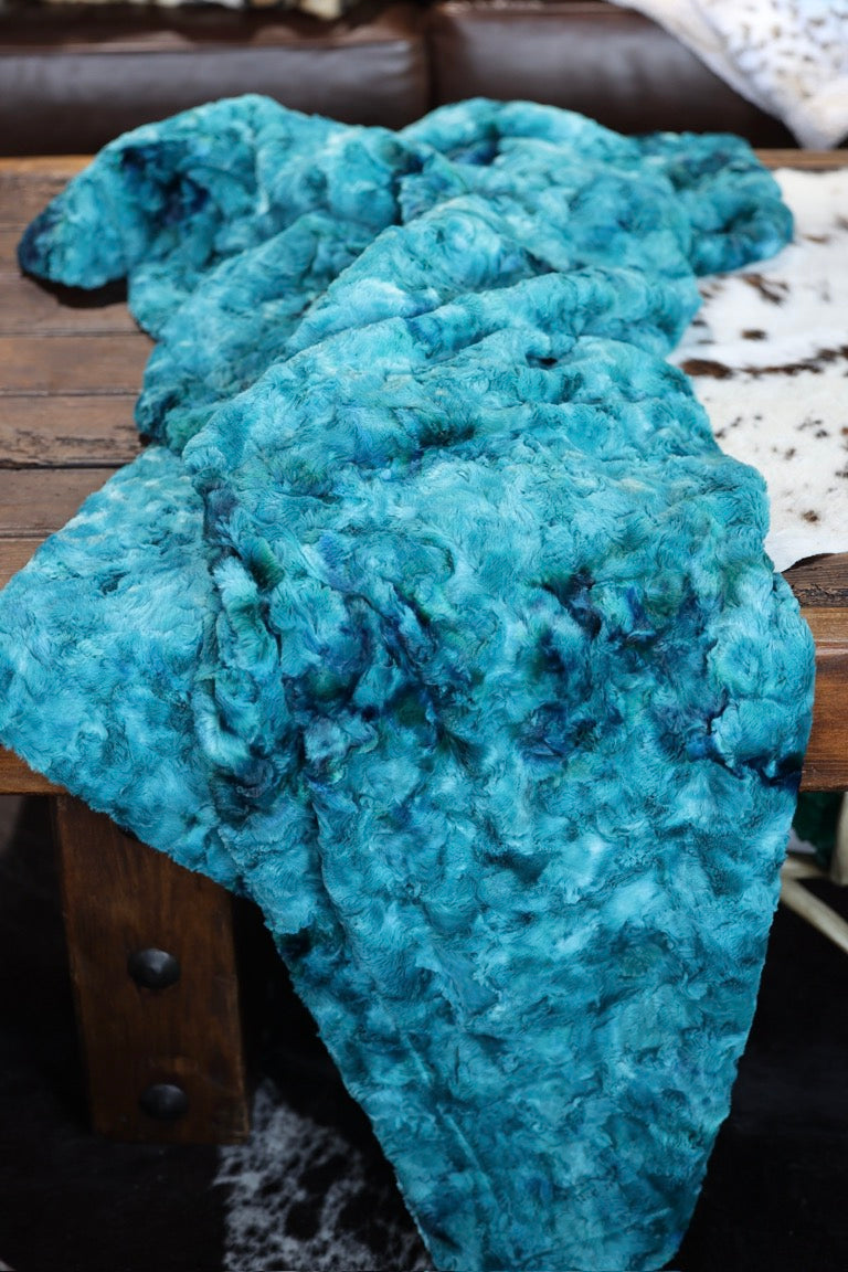 Meet The Turquoise Slab Blanket: A double-sided minky blanket featuring Mallard Galaxy on both sides. Indulge in the ultimate embrace with our luxurious, handmade Minky blanket, crafted with care in the USA for unmatched softness and plushness, offering an unparalleled cozy experience.