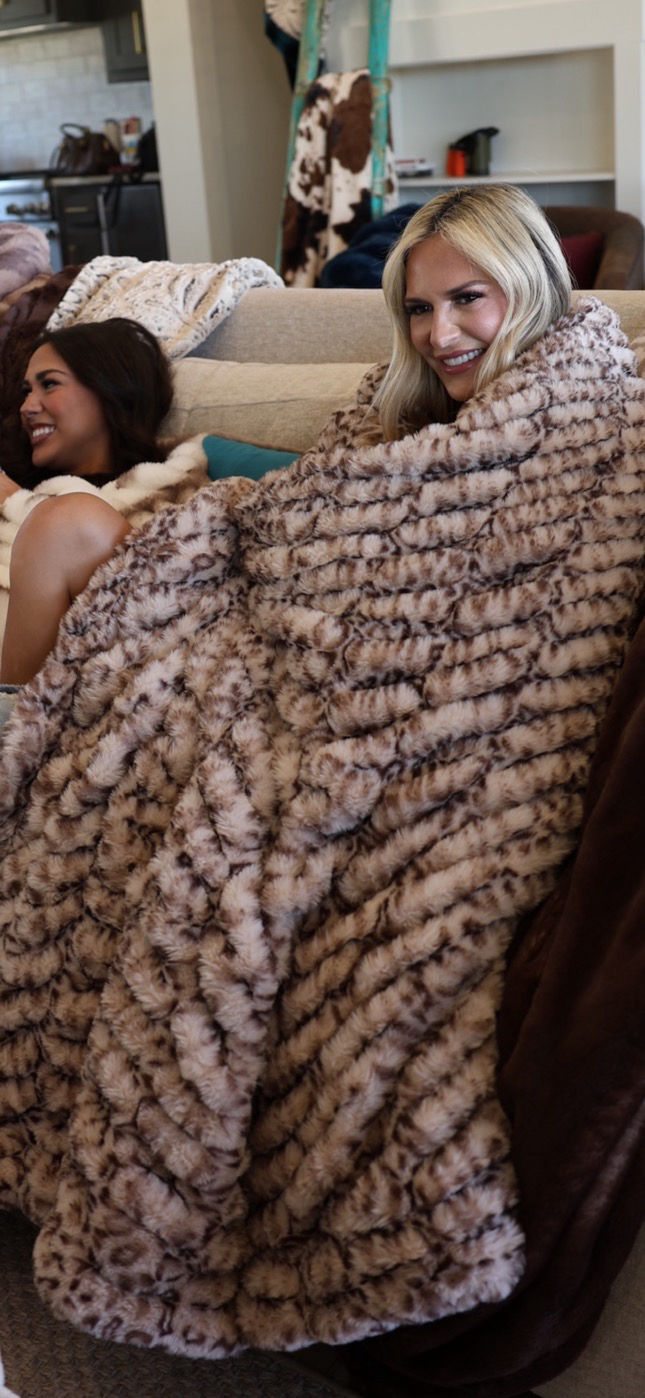 Meet The Maple Glazed Milan Blanket: A double-sided minky blanket featuring Maple Glazed Cheetah Milan. Indulge in the ultimate embrace with our luxurious, handmade Minky blanket, crafted with care in the USA for unmatched softness and plushness, offering an unparalleled cozy experience.