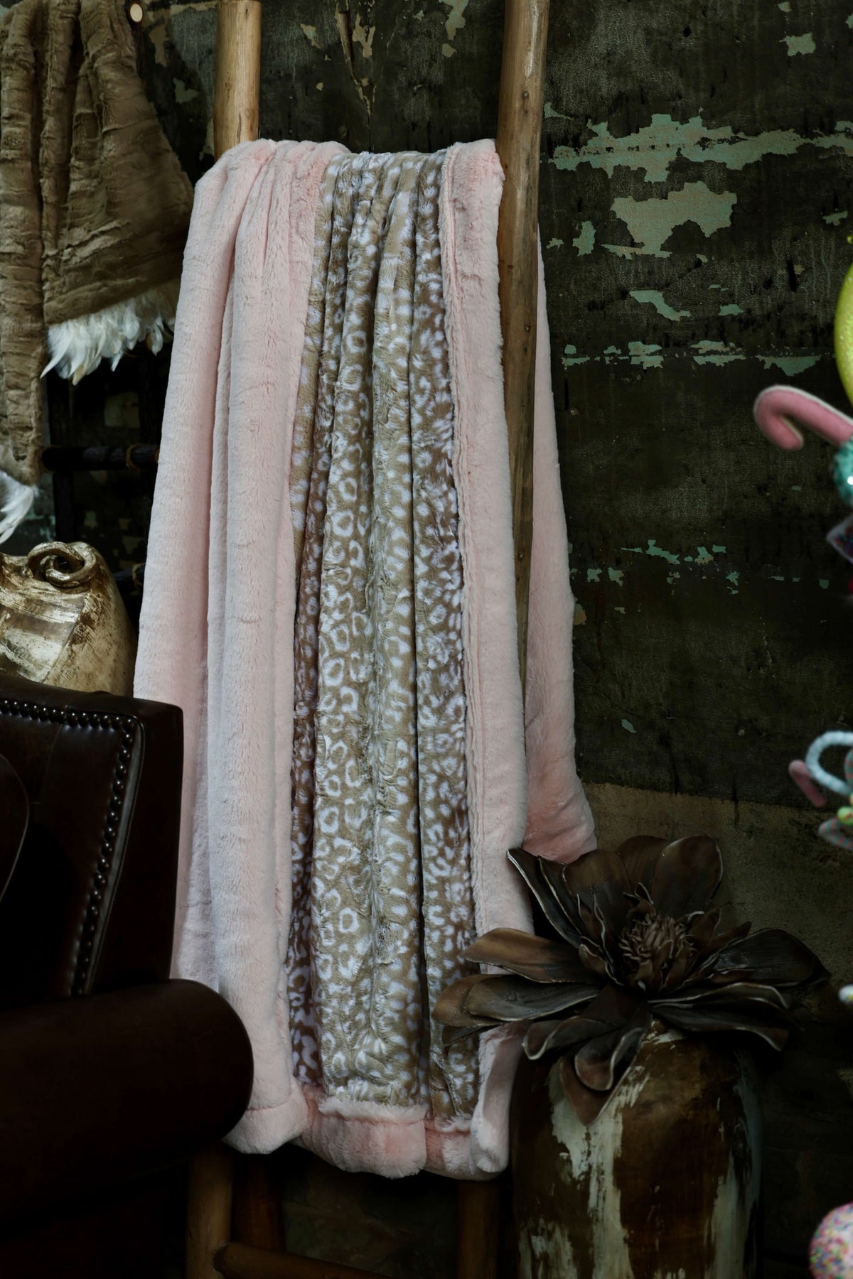 Meet The Pink Biscotti Love Blanket: A double-sided minky blanket featuring Biscotti Ocelot Hide on one side and rich Pink-A-Boo Bunny on the other. Indulge in the ultimate embrace with our luxurious, handmade Minky blanket, crafted with care in the USA to offer unmatched softness and plushness for an unparalleled cozy experience.
