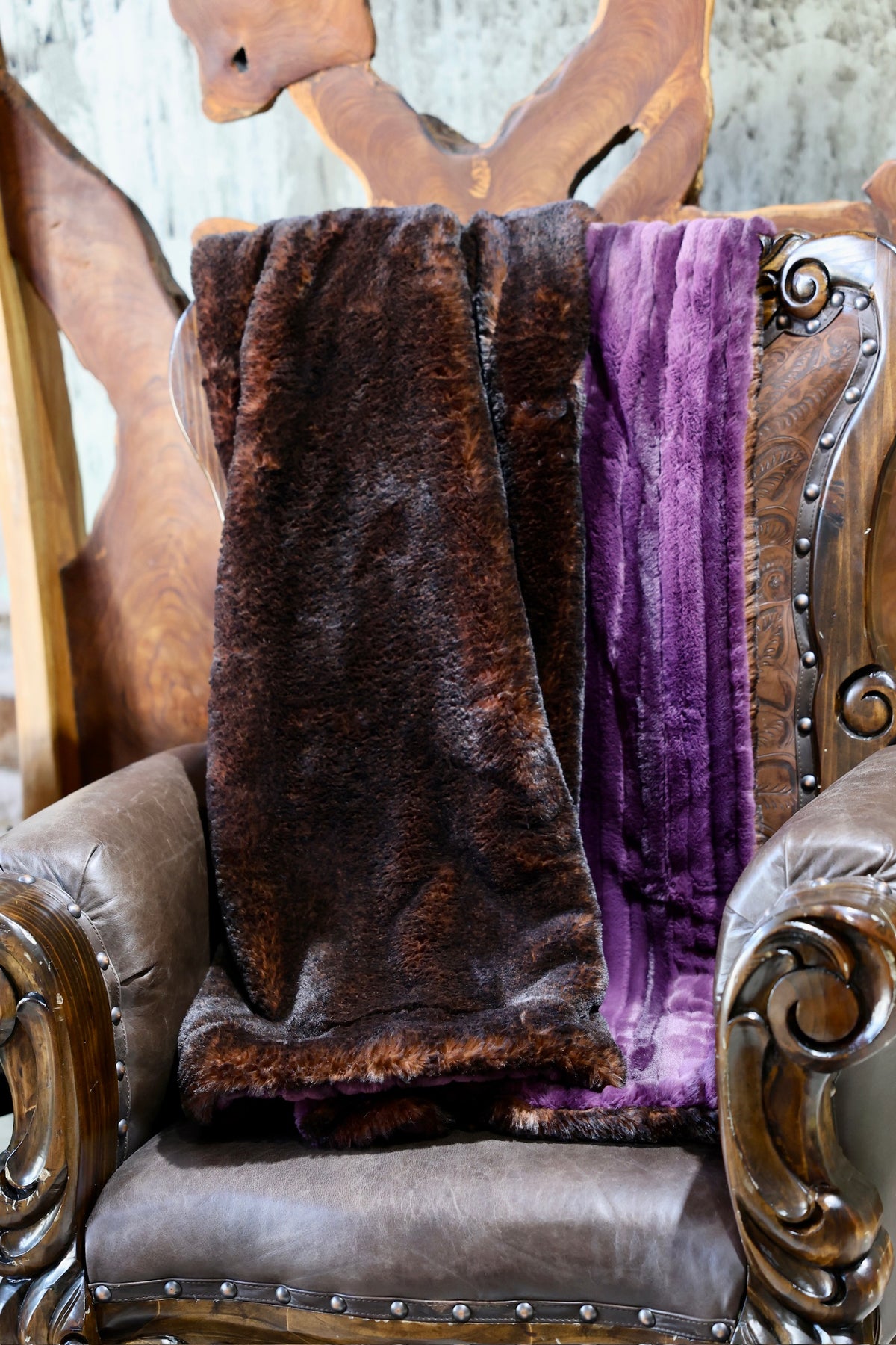 Meet The Vienna Rouge Blanket: A double-sided minky blanket featuring Plumwine Vienna on one side and rich French Roast Arctic Fox on the other. Indulge in the ultimate embrace with our luxurious, handmade Minky blanket, crafted with care in the USA to offer unmatched softness and plushness for an unparalleled cozy experience.