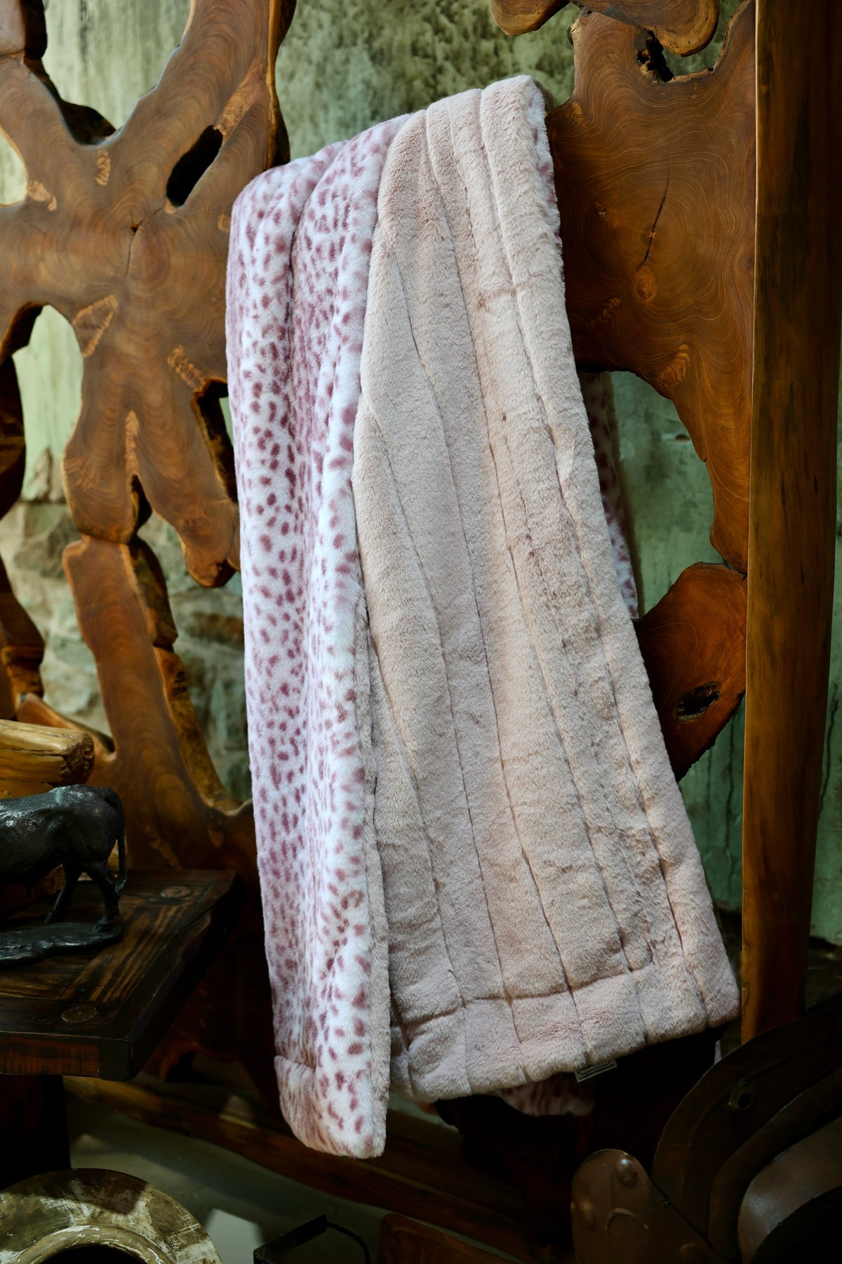 Meet The Wild Rose Savanna Blanket: A double-sided minky blanket featuring Woodrose Savanna on one side and rich Rosewater Sydney on the other. Indulge in the ultimate embrace with our luxurious, handmade Minky blanket, crafted with care in the USA to offer unmatched softness and plushness for an unparalleled cozy experience.