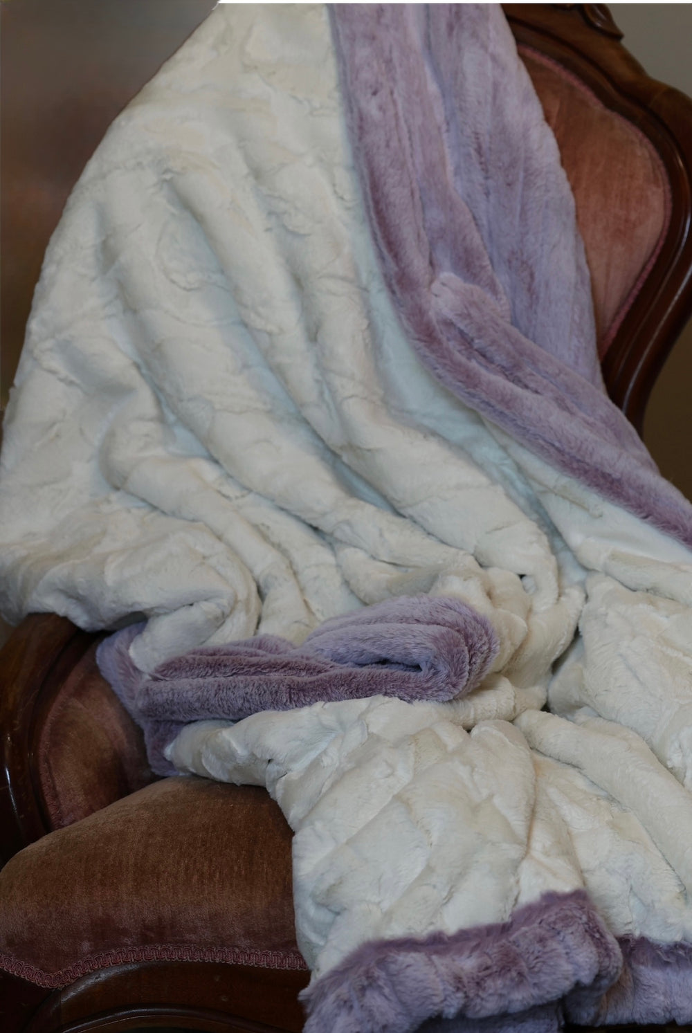 Meet The Elderberry Romance Blanket: A handmade, luxury Minky blanket that combines unmatched softness with a medium-weight plushness for the ultimate cozy experience. Double-sided with silky soft Natural Hide Minky and the subtly textured Elderberry Frosted Vienna Minky, this cooling, yet cozy, blanket is perfect for gifting, decorating, or simply spoiling yourself. Whether it's a birthday, milestone, or "just because" gift, this premium luxury blanket turns every day into a staycation.