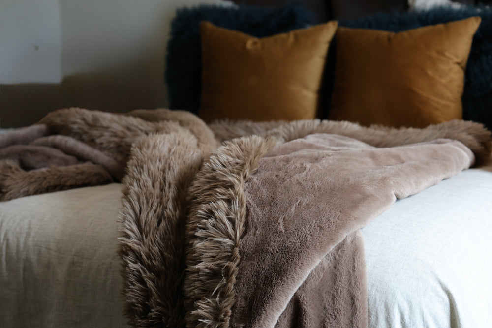 Meet The Grizzly Haven Blanket: A handmade, luxury Minky blanket that combines unmatched softness with a heavyweight plushness for the ultimate cozy experience. Double-sided plush Truffle Encore Minky and the faux fur like Truffle Dreamy Fur Minky, this cooling, yet comfortable, blanket is perfect for gifting, decorating, or simply spoiling yourself, whether it's a birthday, milestone, or "just because" gift. This premium luxury blanket turns every day into a staycation.